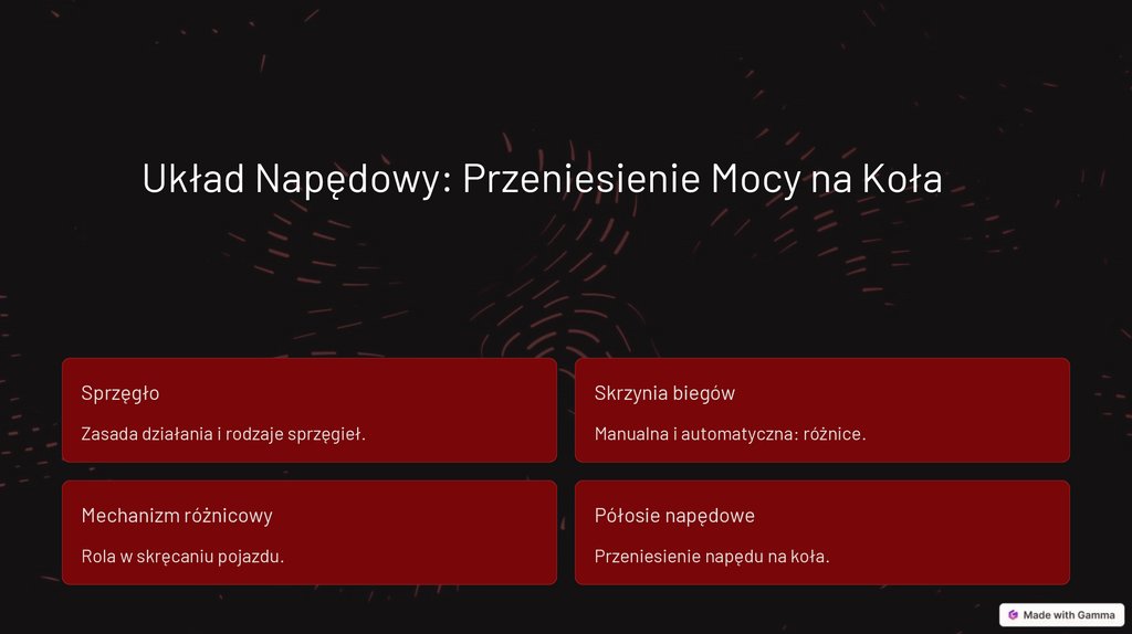 Prezentacja ma na celu zapoznanie kursantów auto szkoły z budową