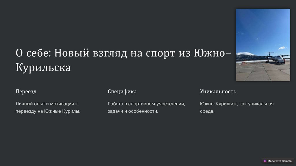 О себе: Новый взгляд на спорт из ЮжноКурильскаПереезд
