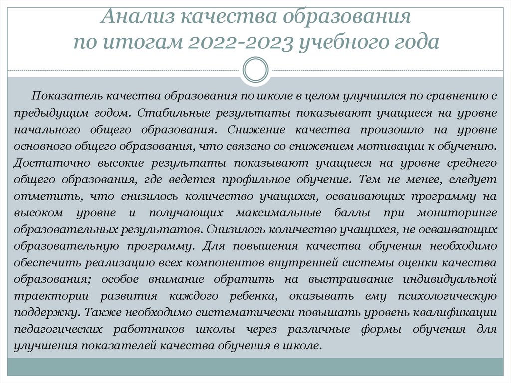 Аналитическая часть отчета о результатах самообследования за 2023 год