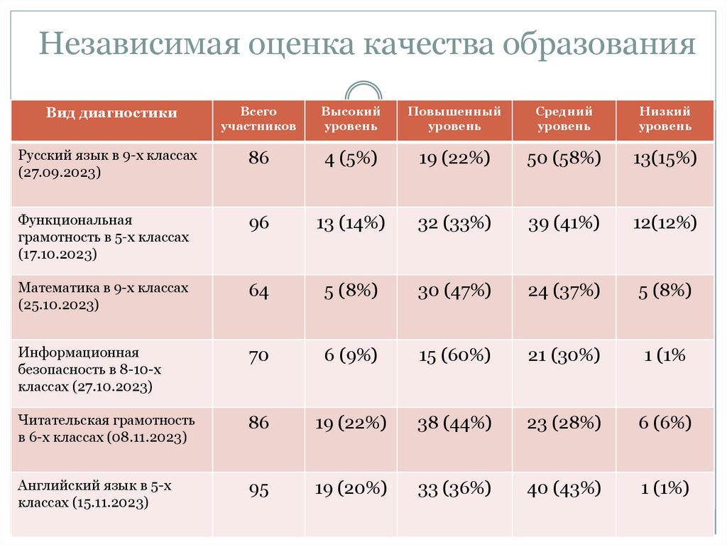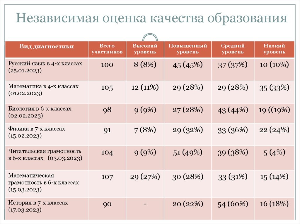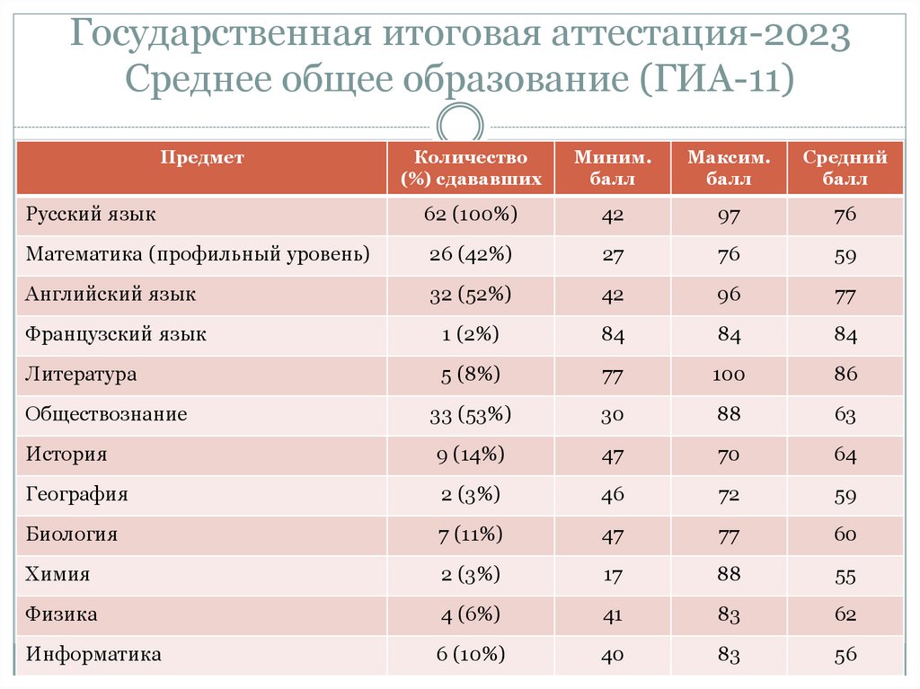 более половины сдаваемых предметов являются выше среднегородских. Лучшие