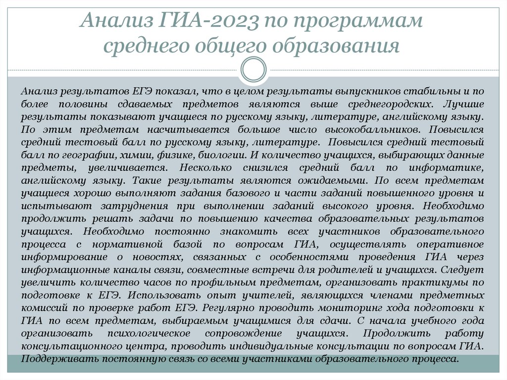 Анализ результатов ЕГЭ показал, что в целом результаты выпускников стабильны и по