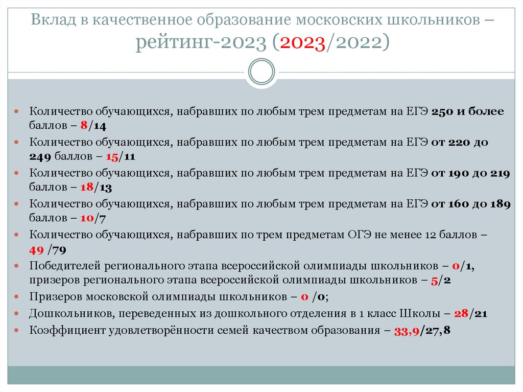 Вклад в качественное образование московских школьников –рейтинг-2023 (2023/2022)