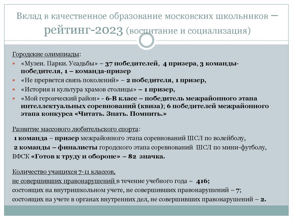 Вклад в качественное образование московских школьников –рейтинг-2023 (воспитание и социализация)