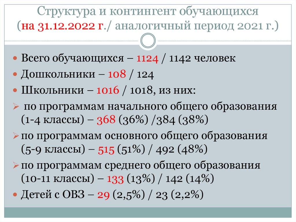 Структура и контингент обучающихся(на 31.12.2022 г./ аналогичный период 2021 г.)