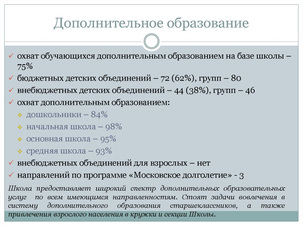 Дополнительное образованиеохват обучающихся дополнительным образованием на базе школы –