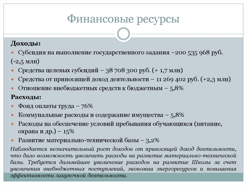 базы. Требуется дальнейшее увеличение расходов на развитие Школы за счет