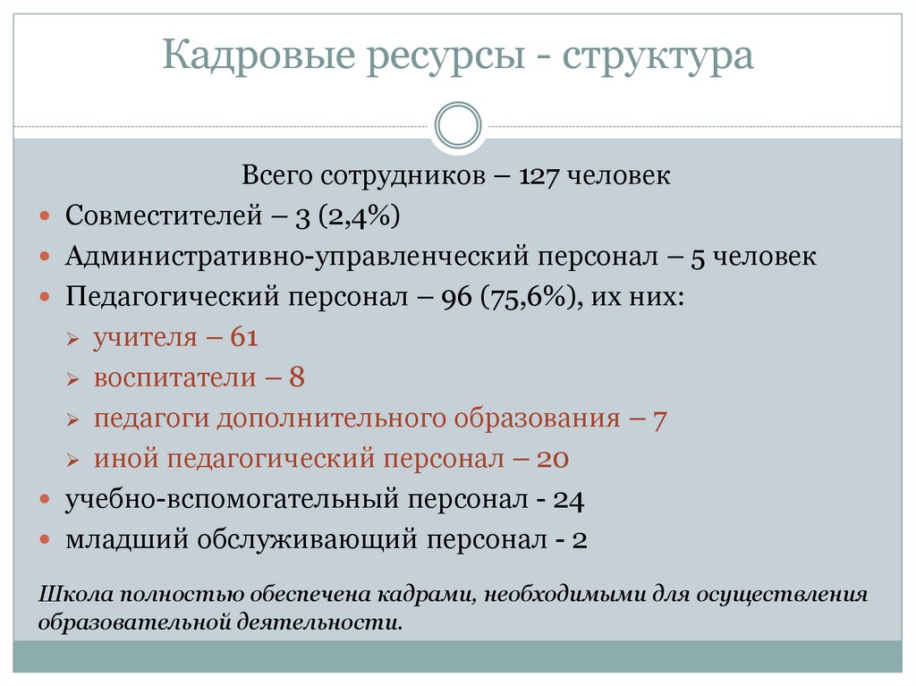 Кадровые ресурсы - структураВсего сотрудников – 127 человек