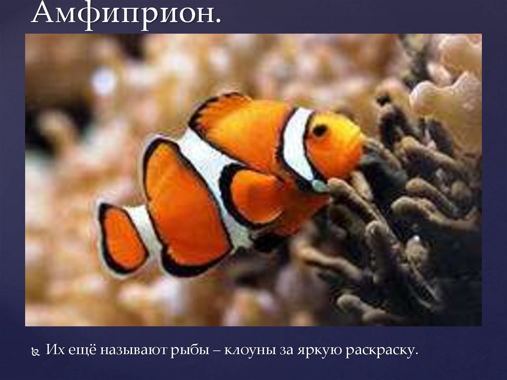 Амфиприон.Их ещё называют рыбы – клоуны за яркую раскраску.
