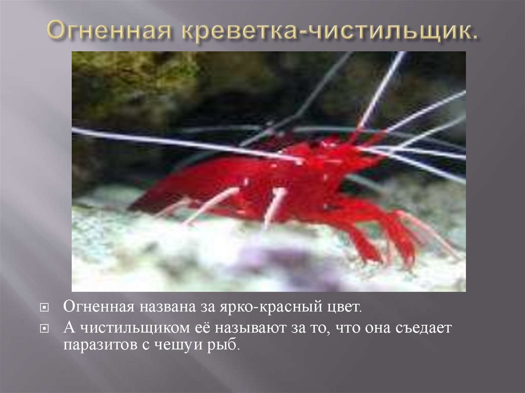 Огненная названа за ярко-красный цвет.А чистильщиком её называют за то, что она съедает