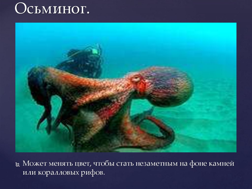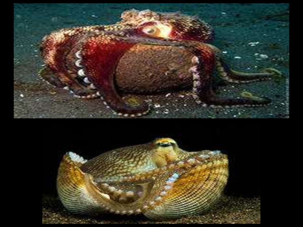 Осьминог.Может менять цвет, чтобы стать незаметным на фоне камней