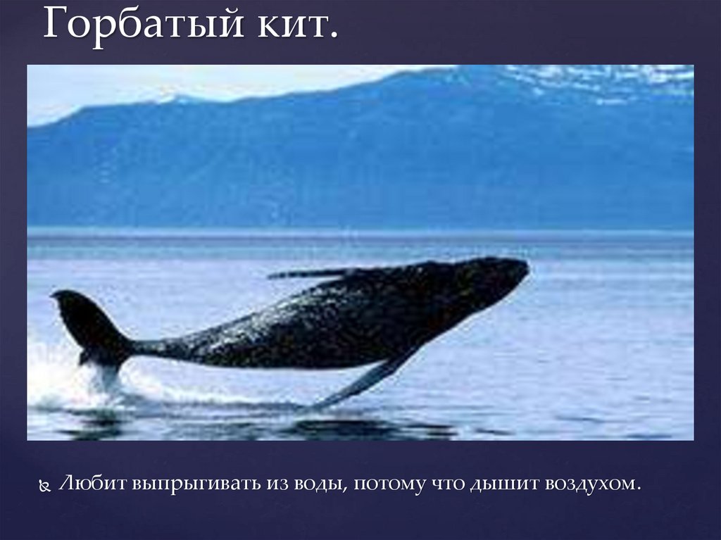 Горбатый кит.Любит выпрыгивать из воды, потому что дышит воздухом.