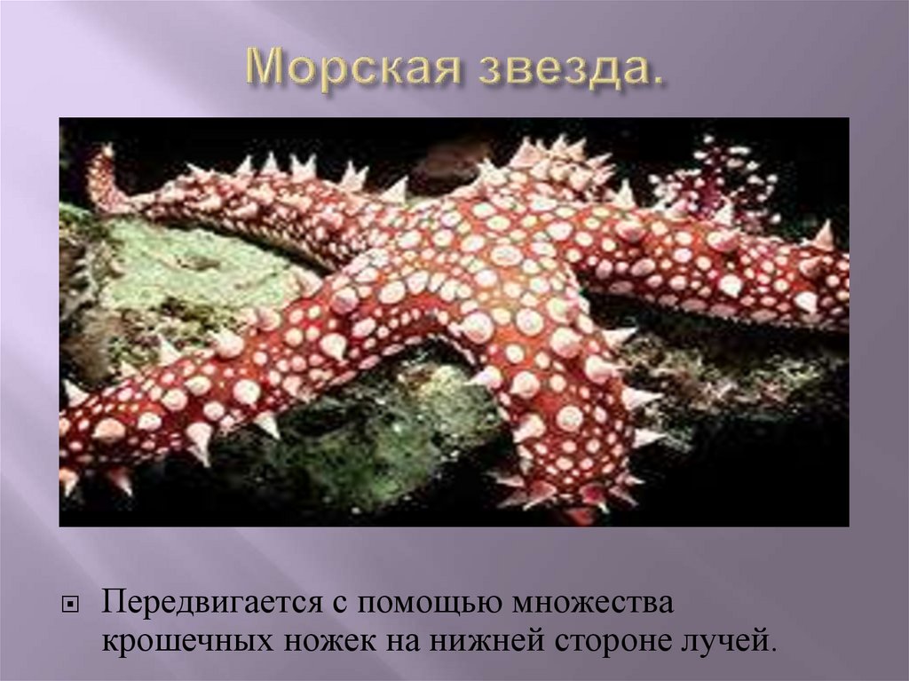 Передвигается с помощью множествакрошечных ножек на нижней стороне лучей.