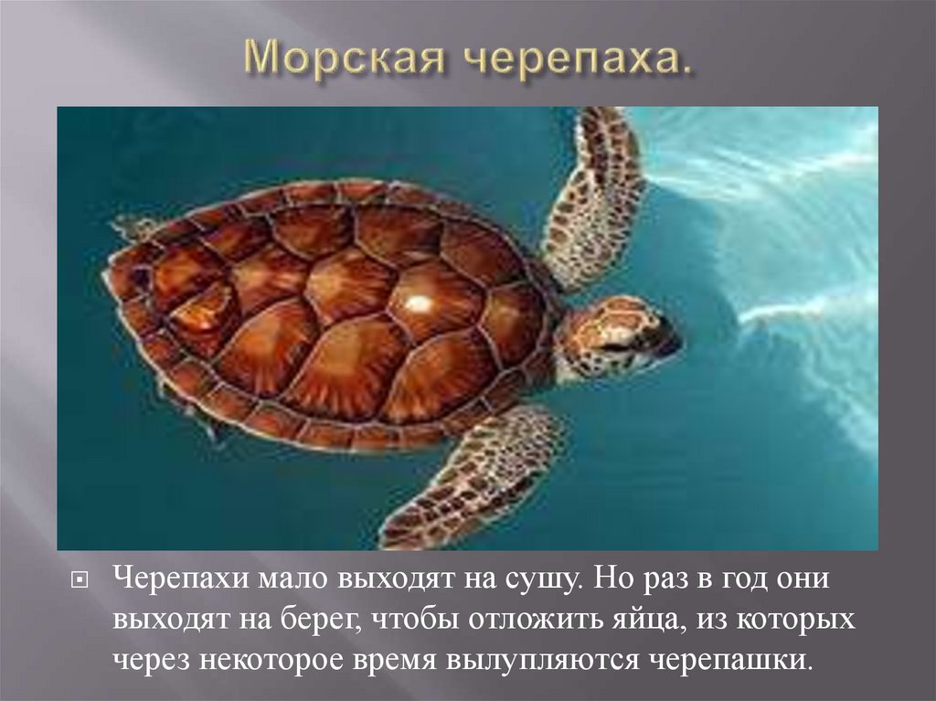 Черепахи мало выходят на сушу. Но раз в год онивыходят на берег, чтобы отложить яйца, из которых