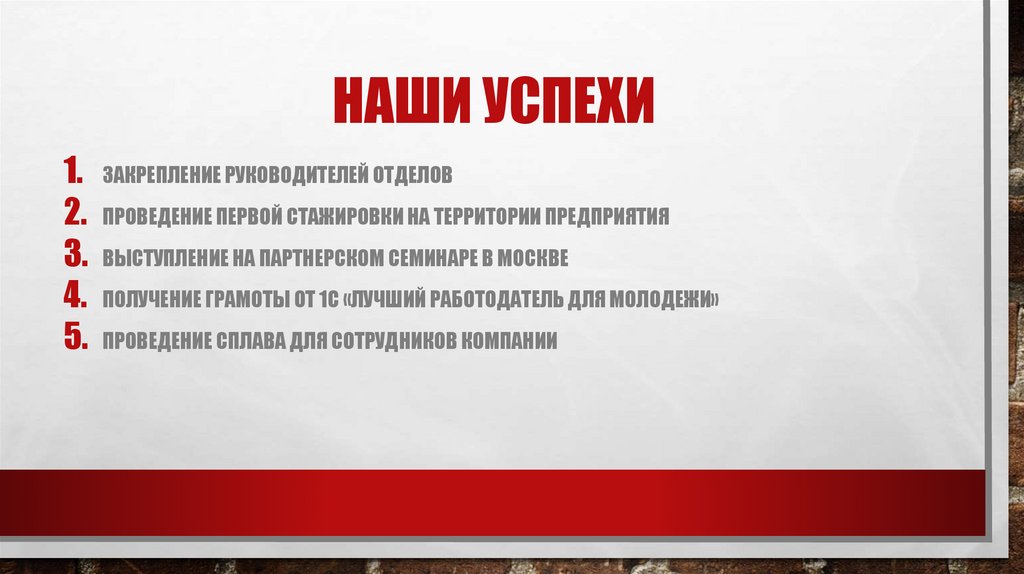 НАШИ УСПЕХИ1. ЗАКРЕПЛЕНИЕ РУКОВОДИТЕЛЕЙ ОТДЕЛОВ