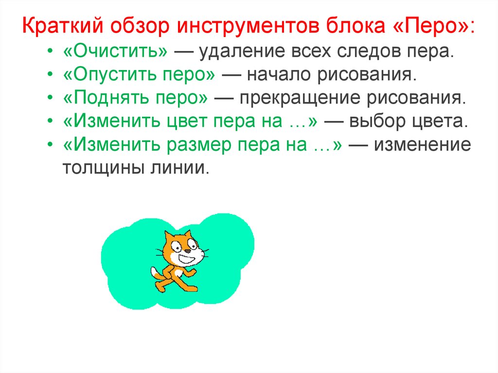 • «Изменить цвет пера на …» — выбор цвета.