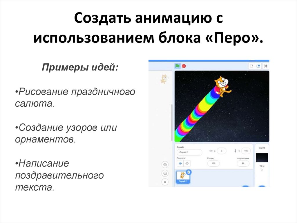 Создать анимацию сиспользованием блока «Перо».