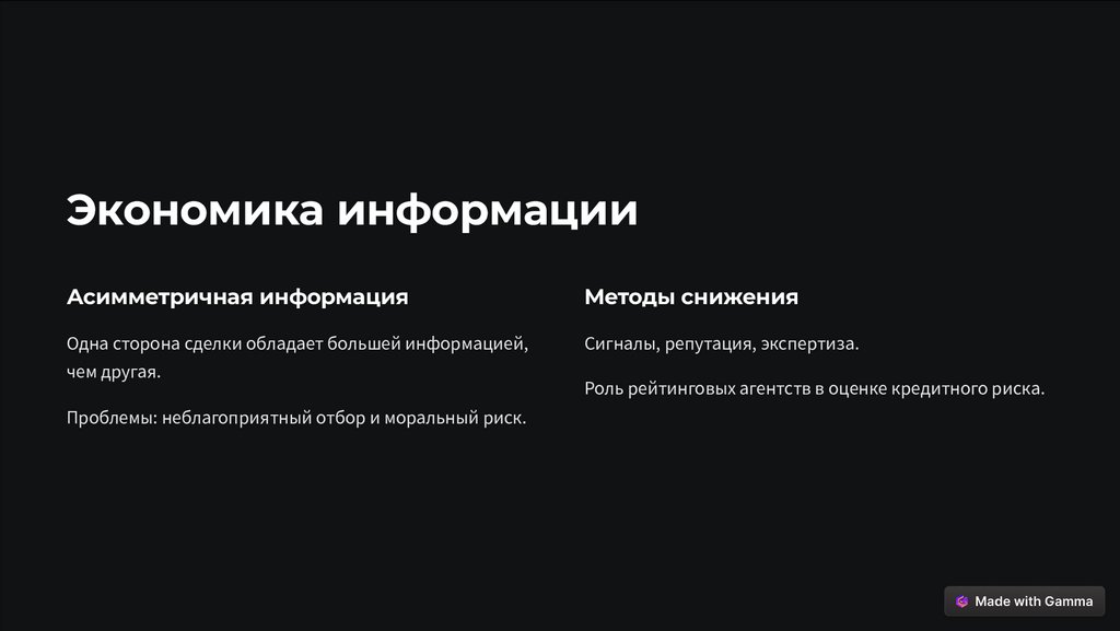 Институциональные аспекты рыночного хозяйства. Экономика информации