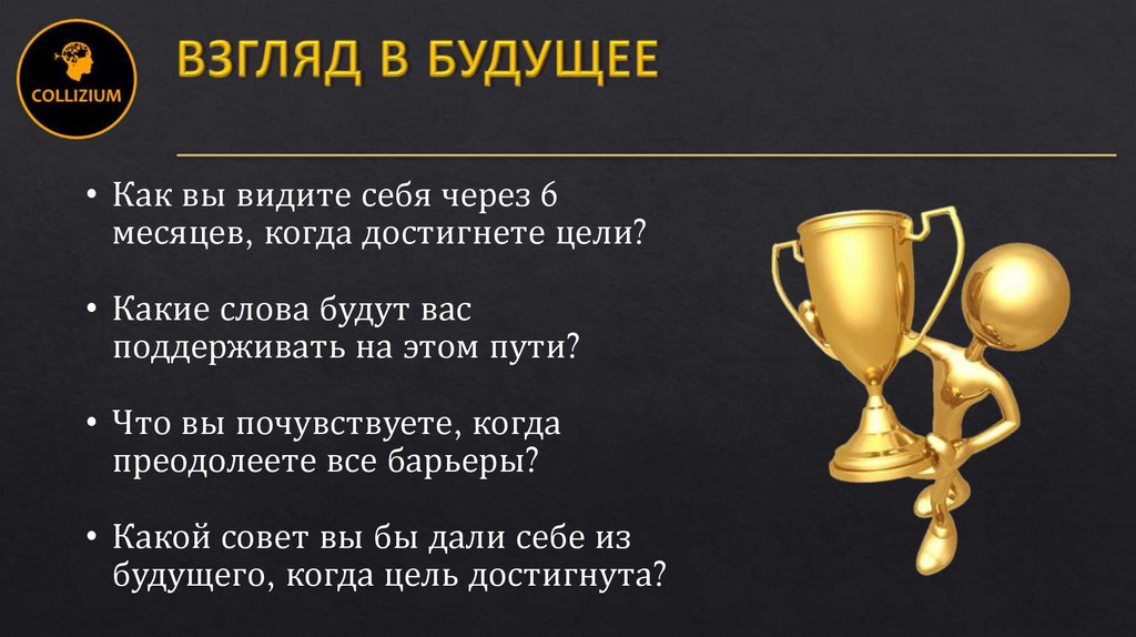• Как вы видите себя через 6месяцев, когда достигнете цели?