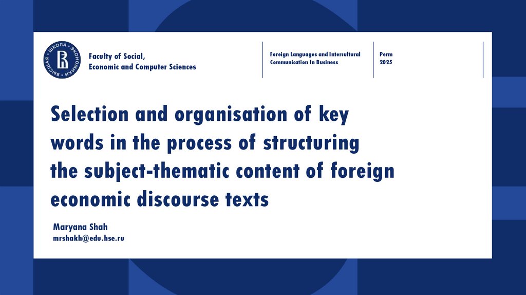 Selection and organisation of key words in the process of structuring the subject–thematic content of foreign economic texts