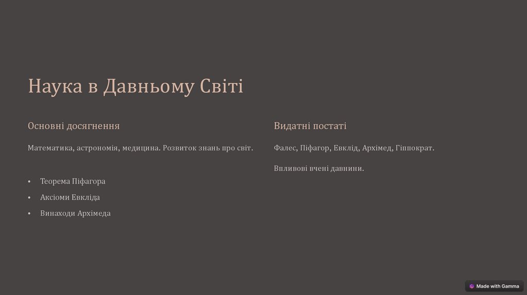 Наука в Давньому СвітіОсновні досягнення