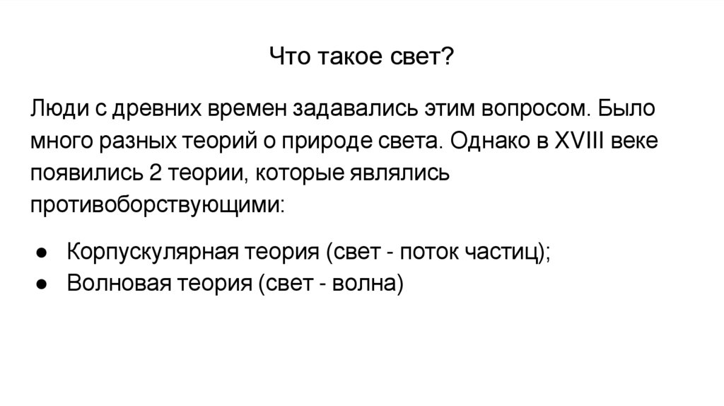 много разных теорий о природе света. Однако в XVIII веке