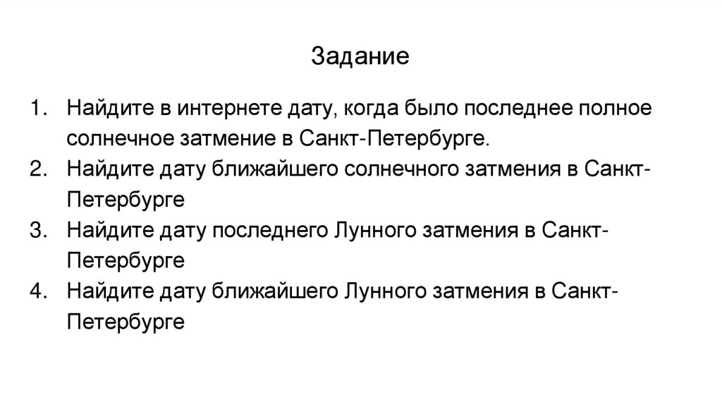 2. Найдите дату ближайшего солнечного затмения в СанктПетербурге
