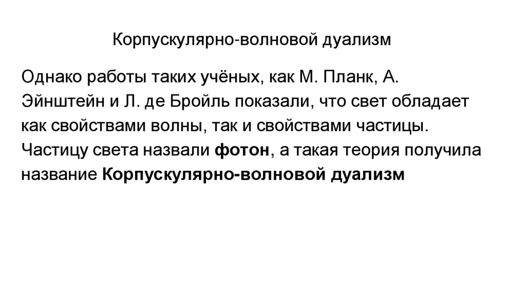 Корпускулярно-волновой дуализмОднако работы таких учёных, как М. Планк, А.