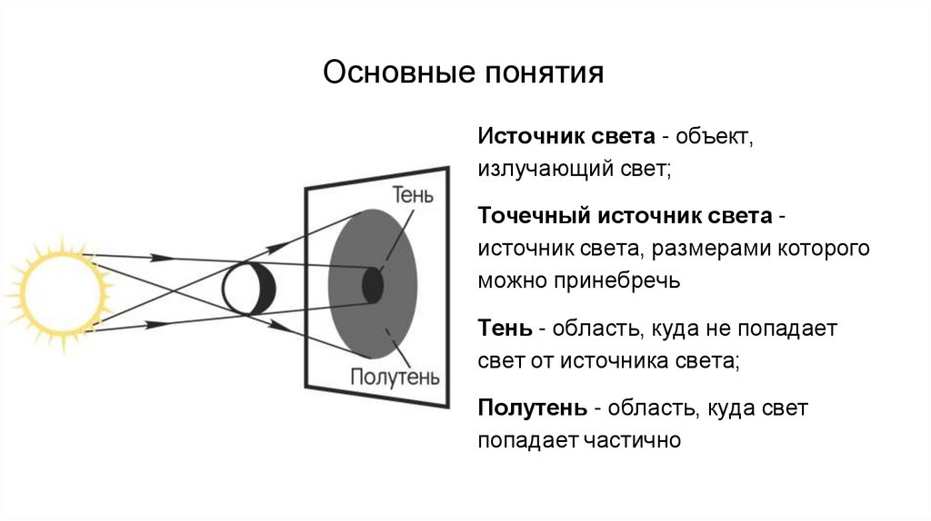 Основные понятияИсточник света - объект,
