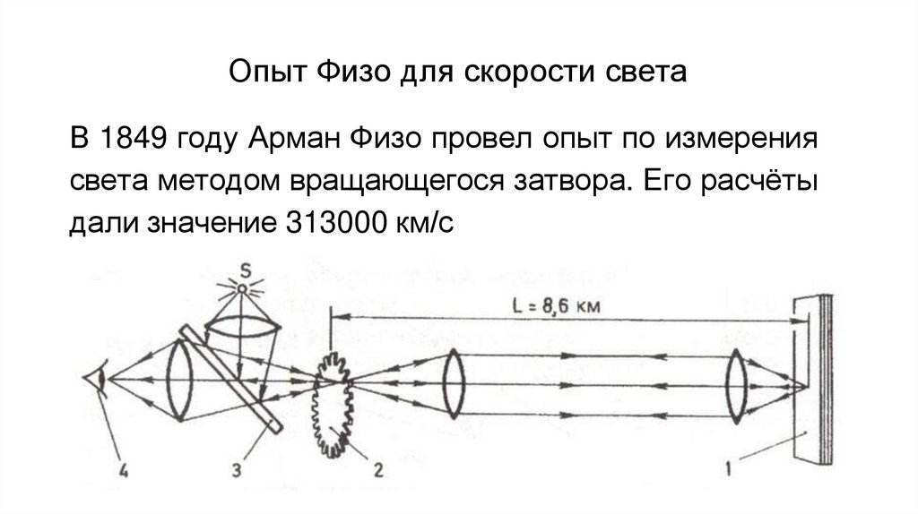 Опыт Физо для скорости светаВ 1849 году Арман Физо провел опыт по измерения
