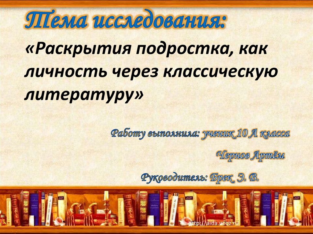 Раскрытия подростка, как личность через классическую литературу