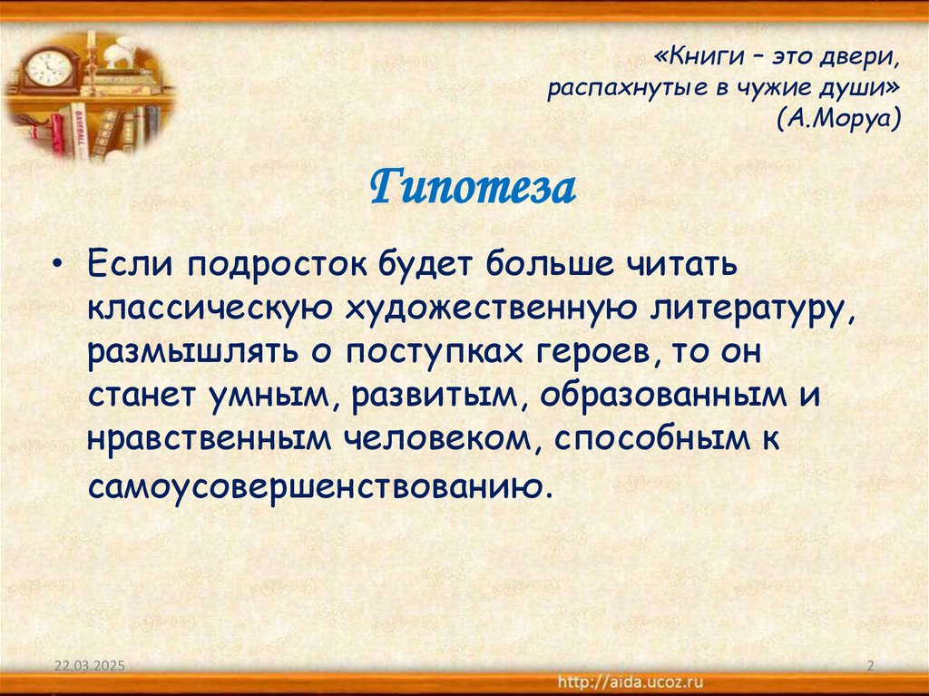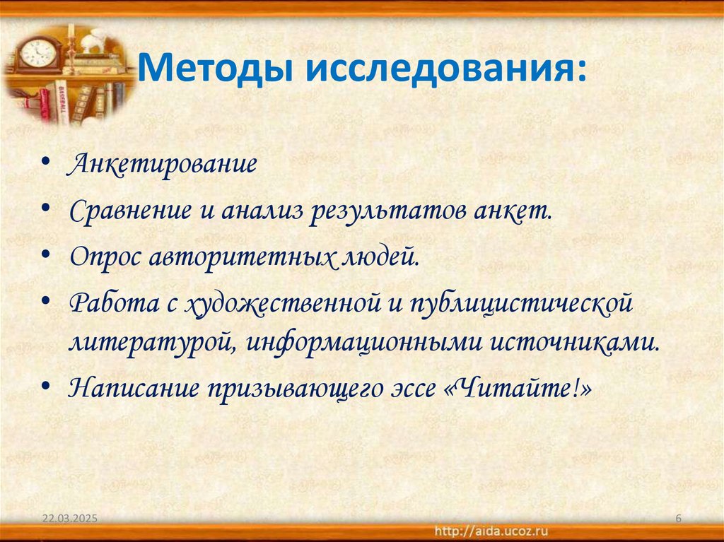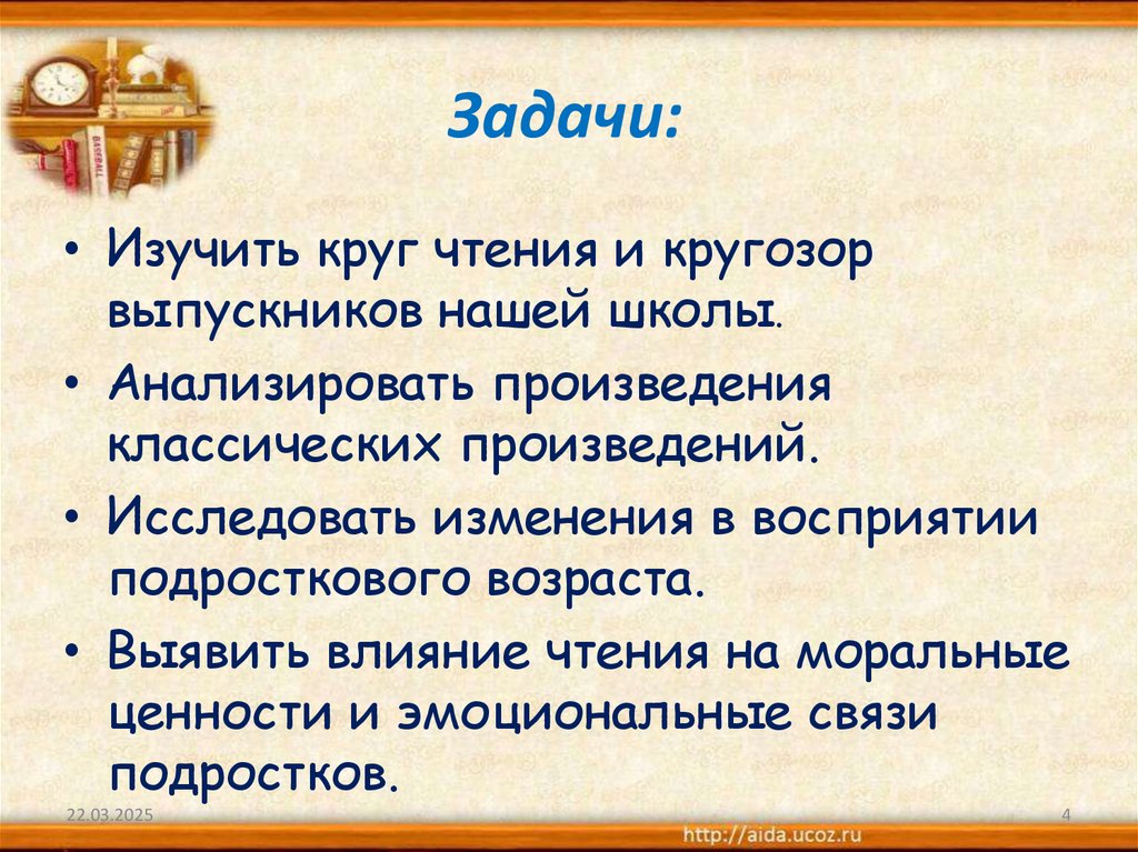 • Выявить влияние чтения на моральные