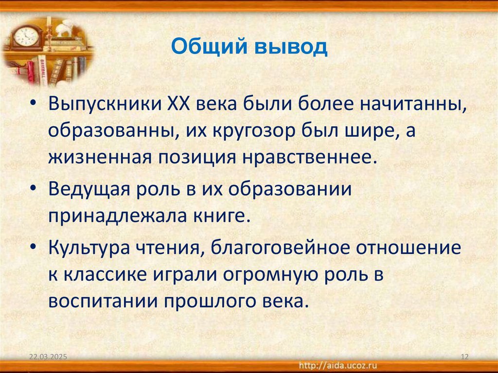 Общий вывод• Выпускники ХХ века были более начитанны,