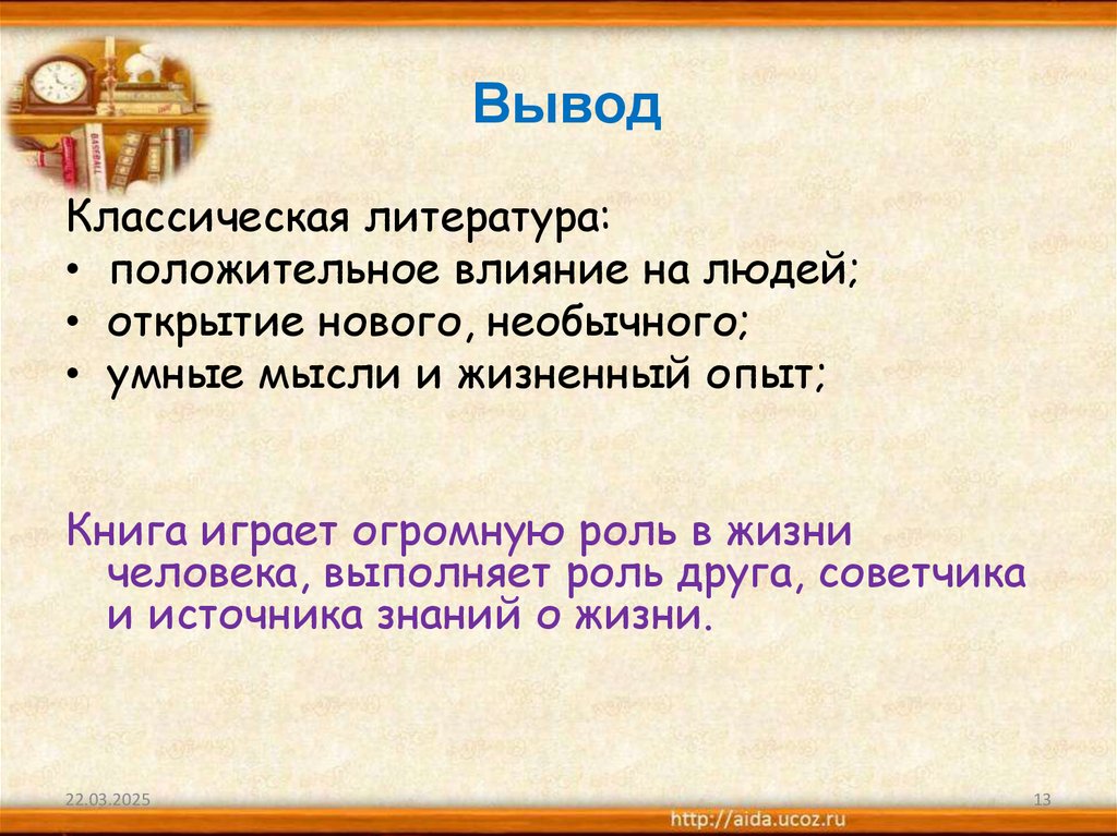 ВыводКлассическая литература: