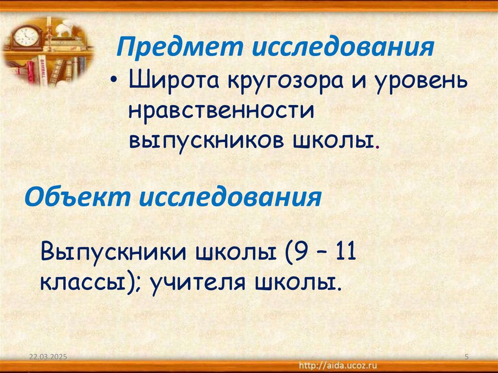 Предмет исследования• Широта кругозора и уровень