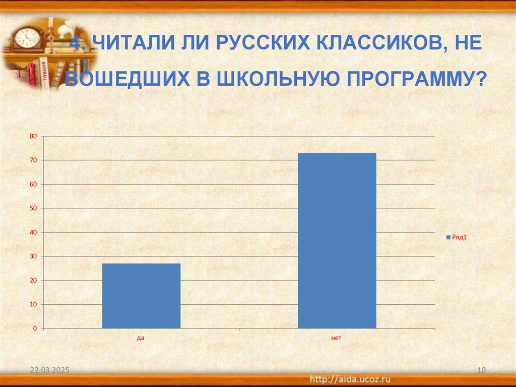 4. ЧИТАЛИ ЛИ РУССКИХ КЛАССИКОВ, НЕВОШЕДШИХ В ШКОЛЬНУЮ ПРОГРАММУ?