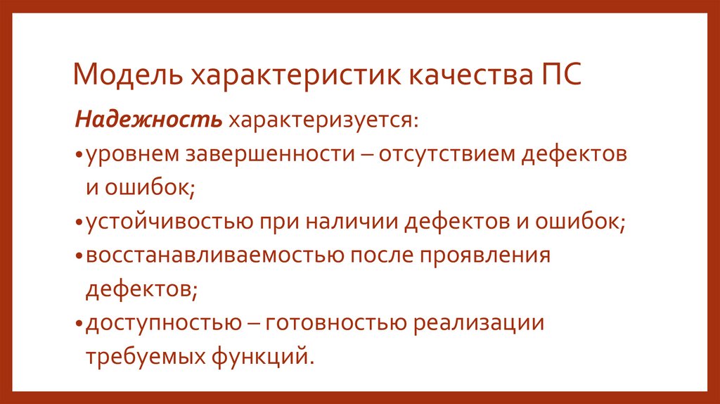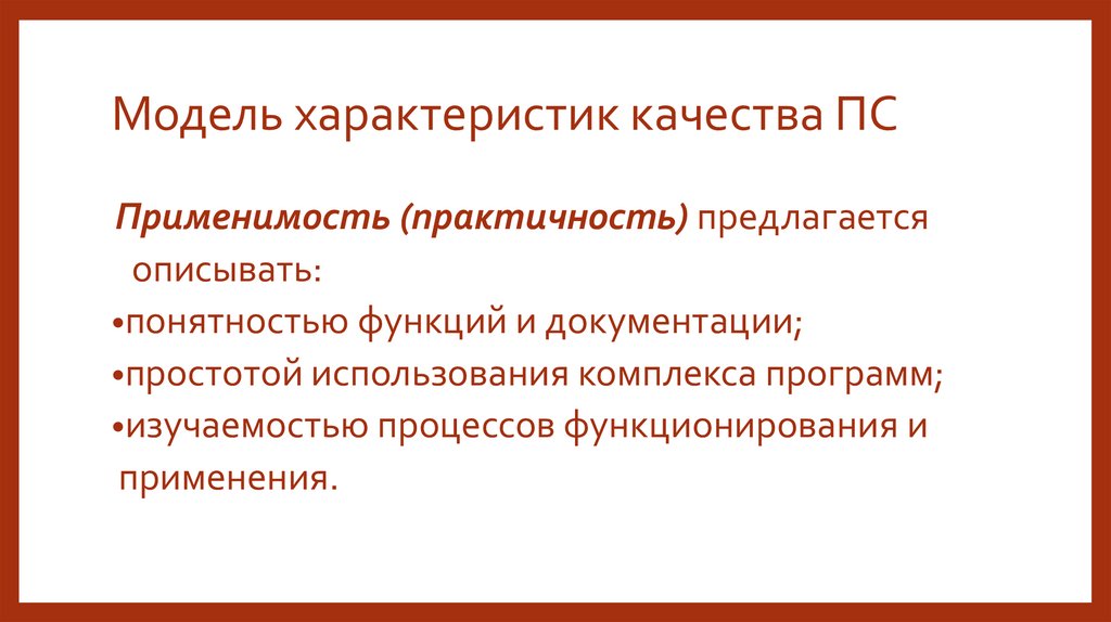 Модель характеристик качества ПСПрименимость (практичность) предлагается