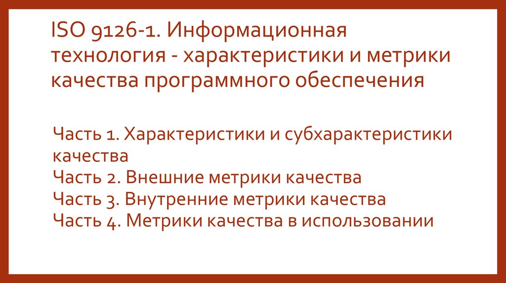 ISO 9126-1. Информационнаятехнология - характеристики и метрики