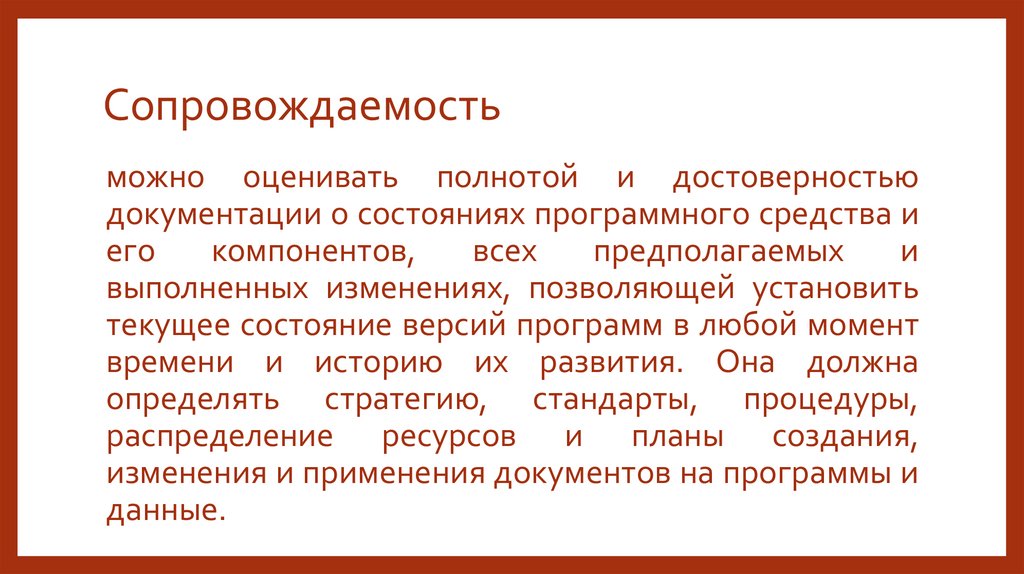 Сопровождаемостьможно оценивать полнотой и достоверностью