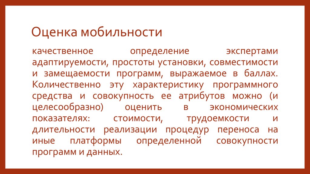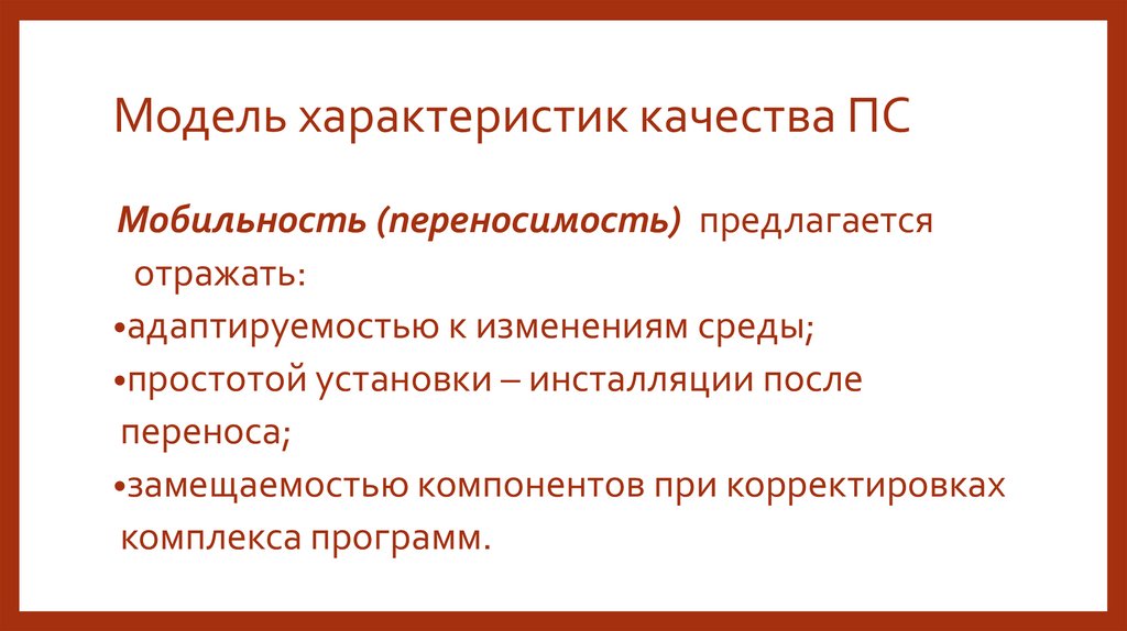 Модель характеристик качества ПСМобильность (переносимость) предлагается