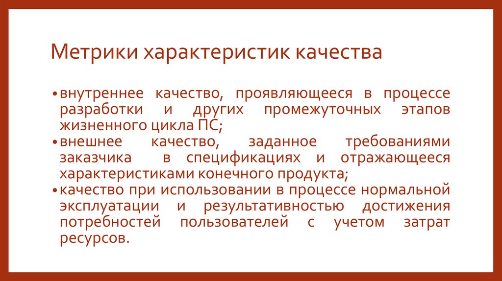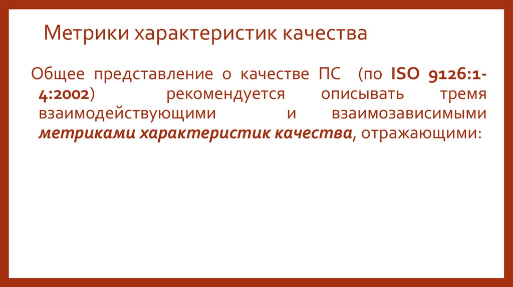 Метрики характеристик качестваОбщее представление о качестве ПС (по ISO 9126:14:2002)