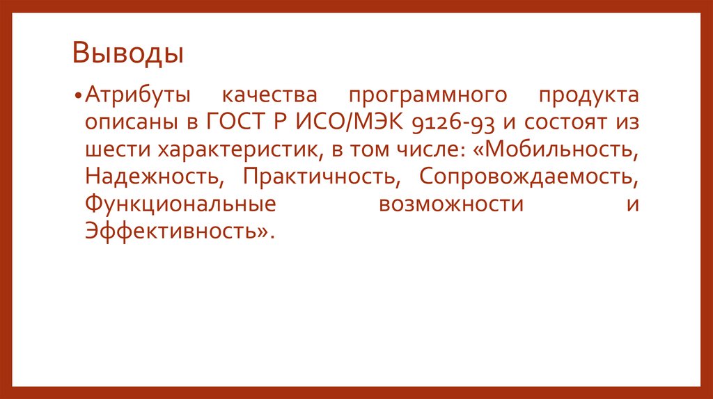 описаны в ГОСТ Р ИСО/МЭК 9126-93 и состоят из
