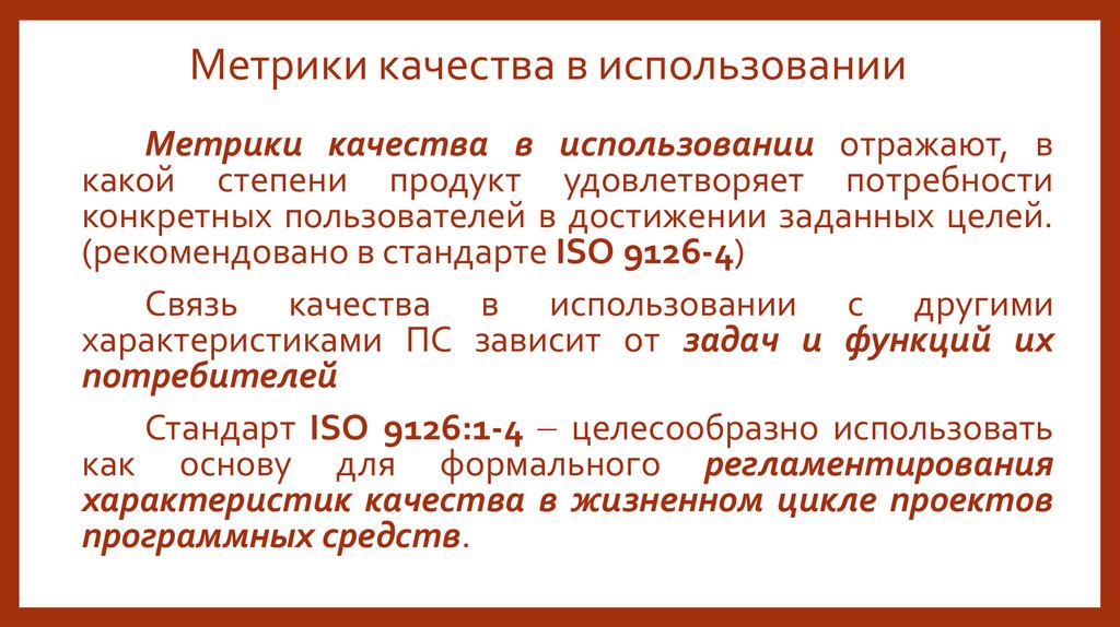 Метрики качества в использованииМетрики качества в использовании отражают, в