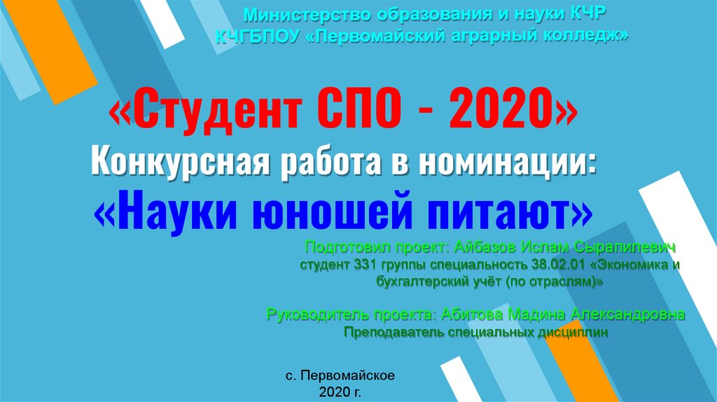 «Студент СПО - 2020»Конкурсная работа в номинации: