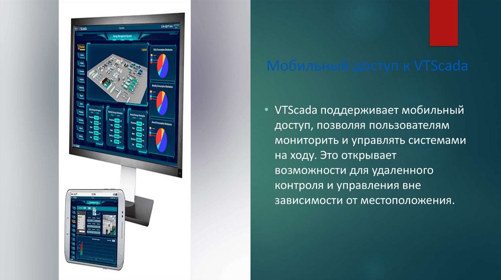 Мобильный доступ к VTScada• VTScada поддерживает мобильный