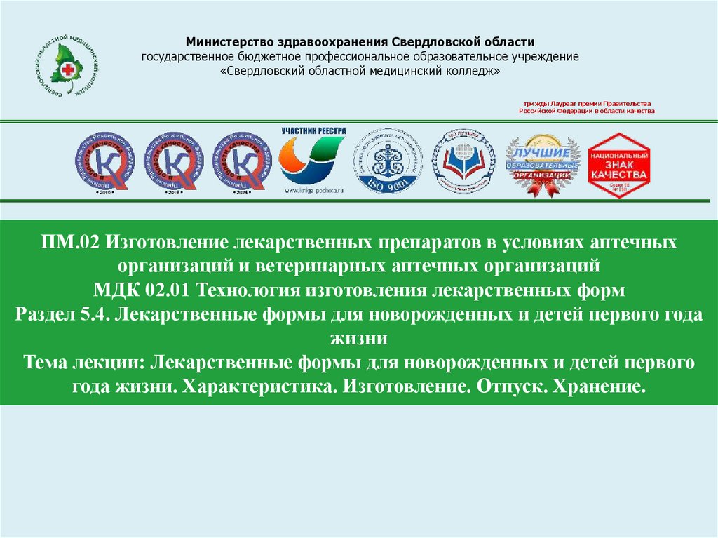 Тема лекции: Лекарственные формы для новорожденных и детей первого