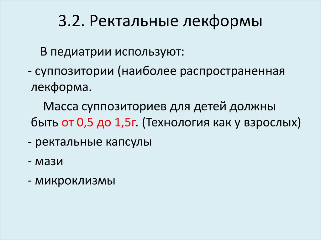 суппозитории для детей имеют массу 0,5–1,5 г.