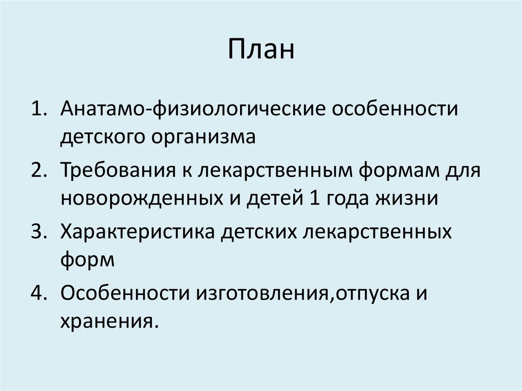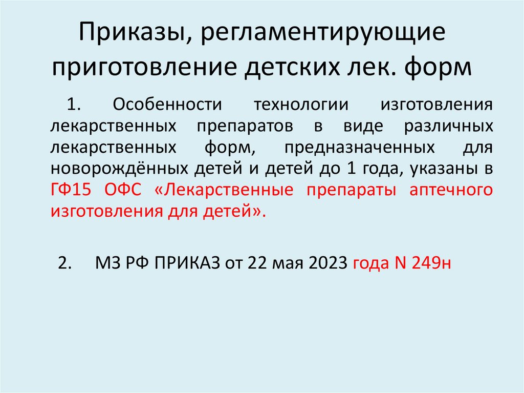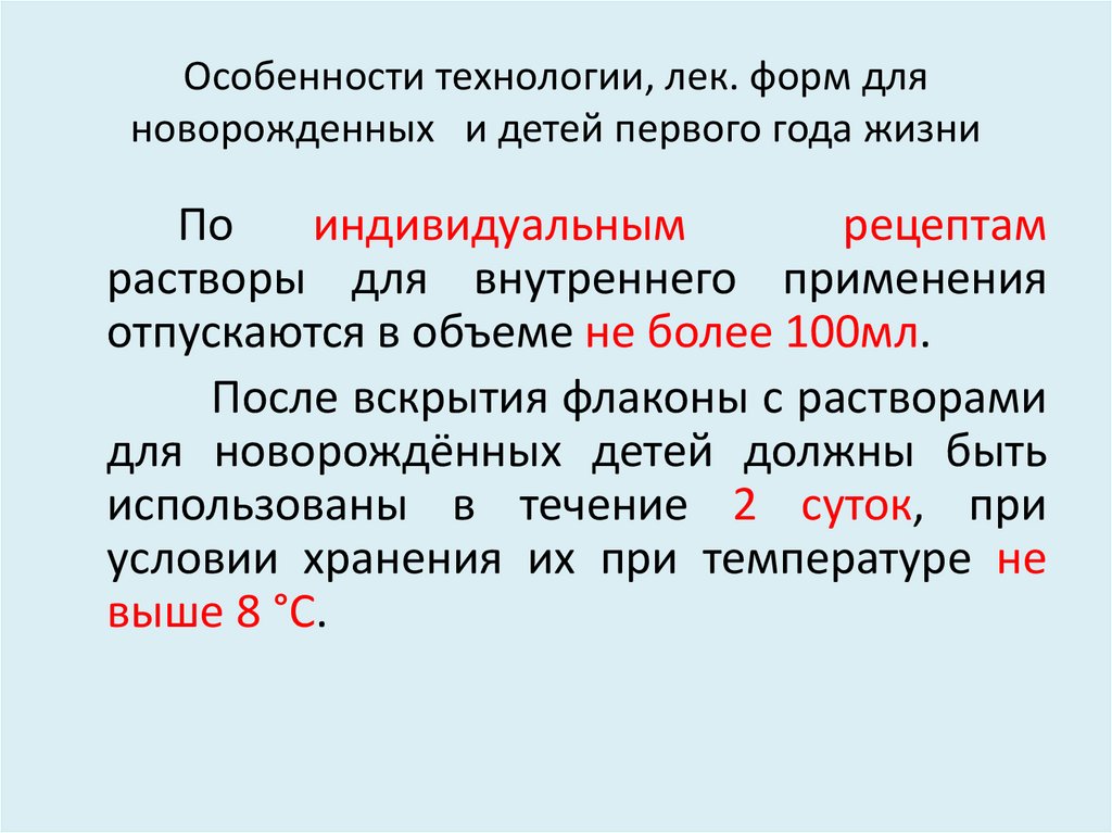 Лекарственные формы для новорожденных и детей первого года жизни. Характеристика. Изготовление. Отпуск. Хранение