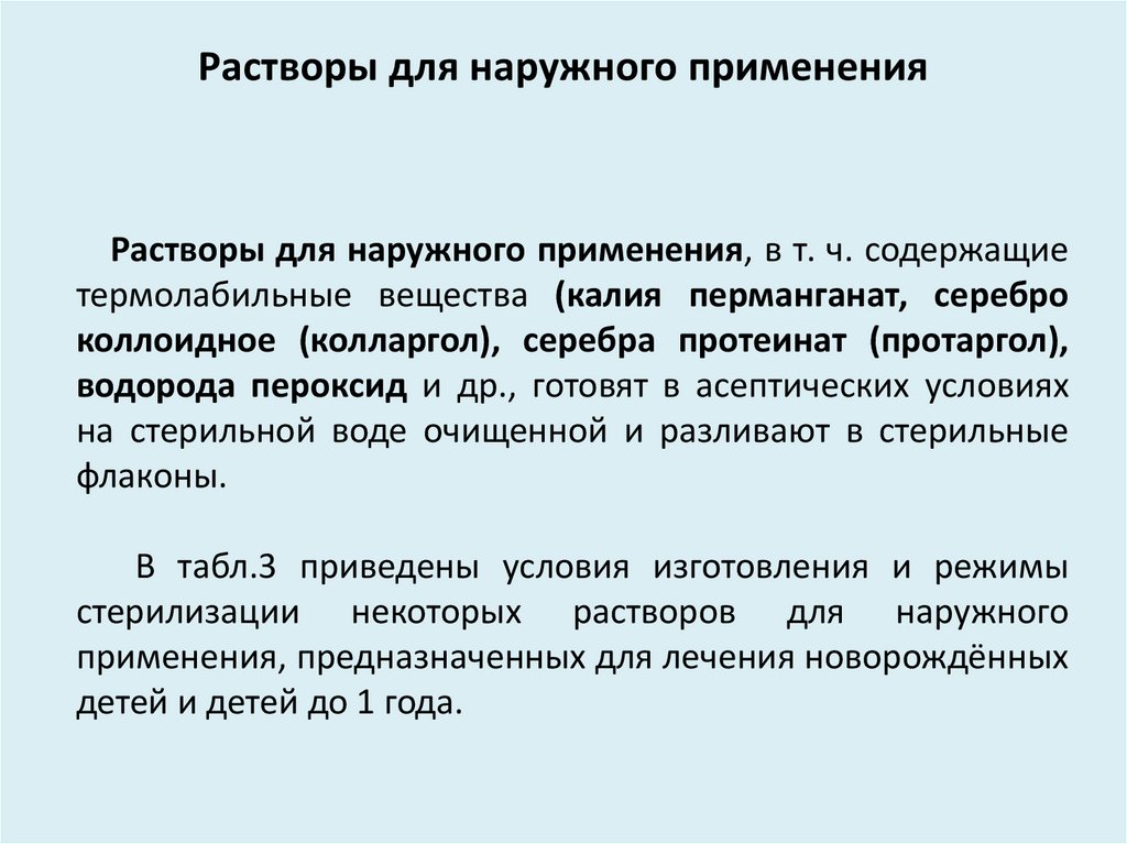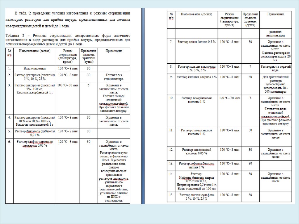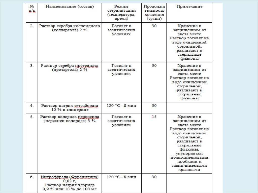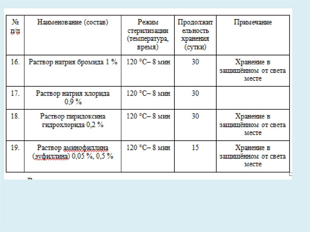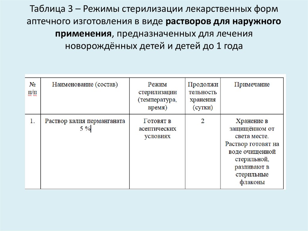 Таблица 3 – Режимы стерилизации лекарственных формаптечного изготовления в виде растворов для наружного