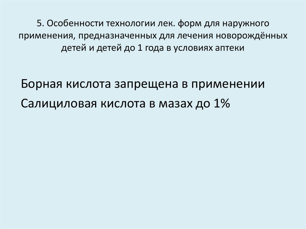 5. Особенности технологии лек. форм для наружногоприменения, предназначенных для лечения новорождённых