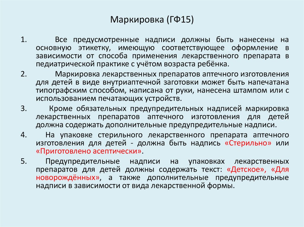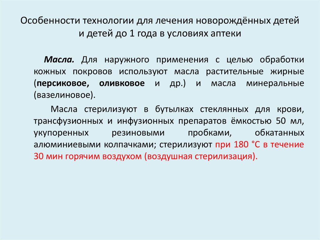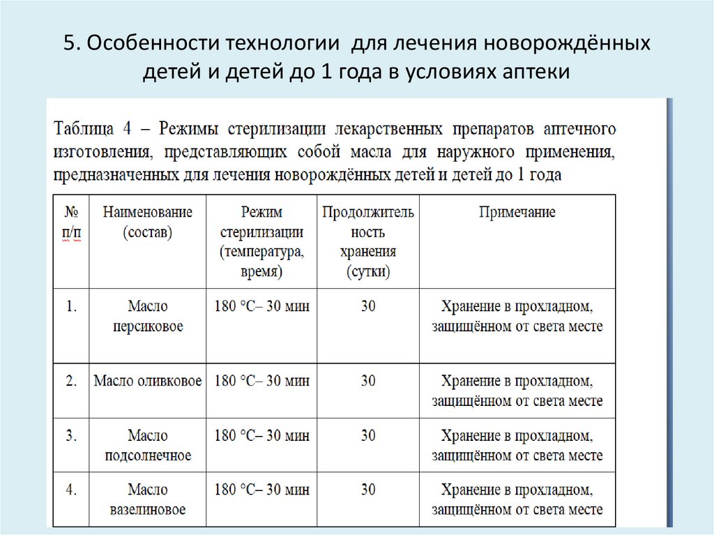 5. Особенности технологии для лечения новорождённыхдетей и детей до 1 года в условиях аптеки